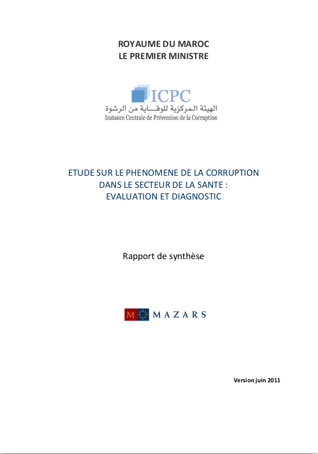 Etude sur le phénomène de la corruption dans le secteur de la santé Etude sur le phénomène de la corruption dans le secteur de la santé